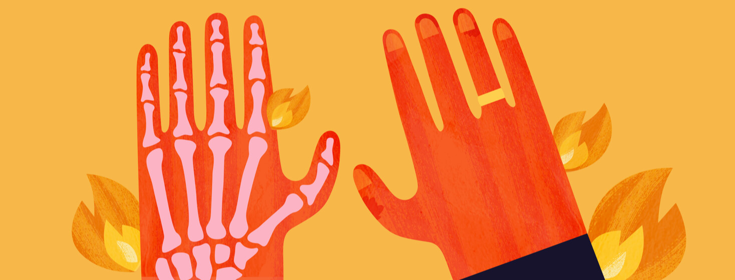 Putting a hot cloth on the hands relieves pain by bringing the swelling down and soothing your tight muscles.